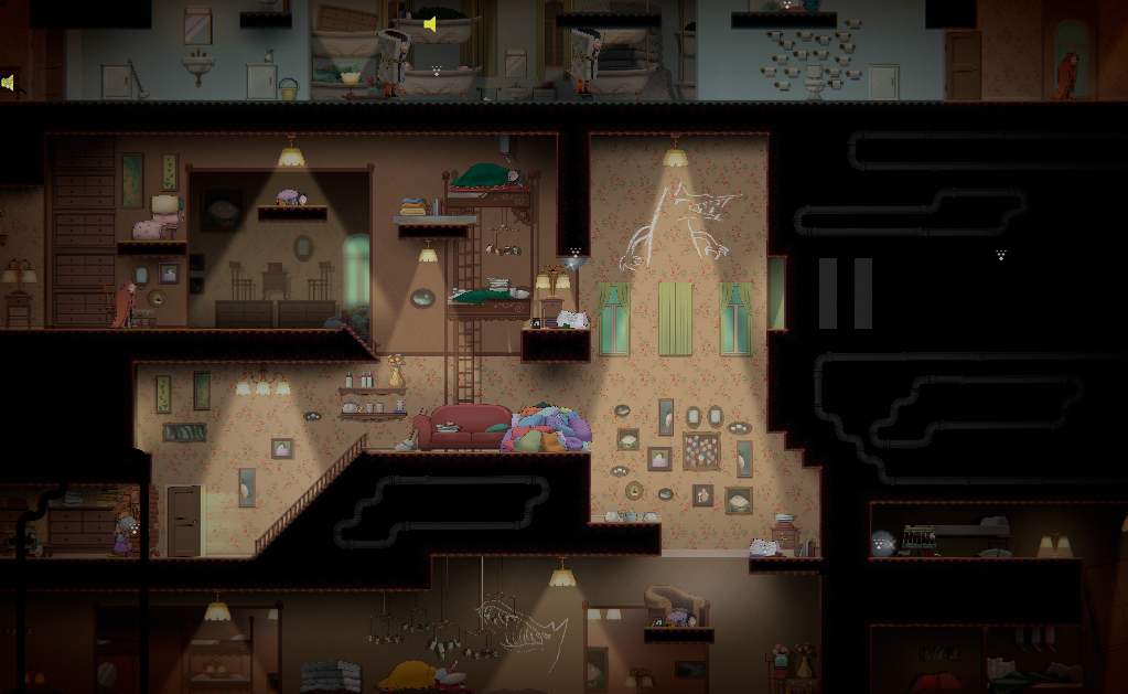 Atmosphäre: Einzigartiger, handgezeichneter Artstyle, der an eine Mischung aus Hollow Knight und den surrealen Werken von David Lynch erinnert.